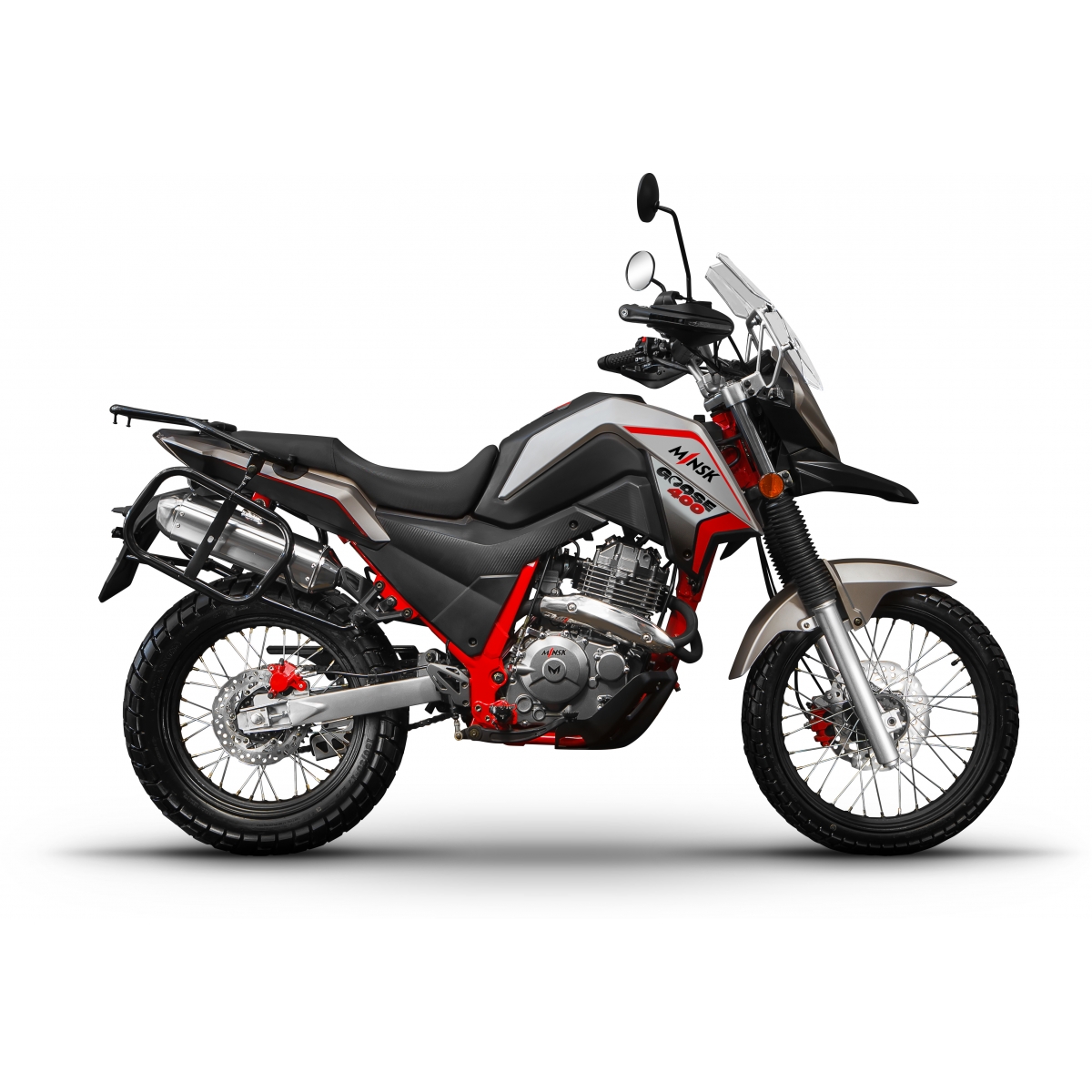 MINSK GOOSE 400 оснащён одноцилиндровым двигателем объёмом 400 см³, который обеспечивает уверенное ускорение и стабильное движение по различным покрытиям. Высокий дорожный просвет и надёжная подвеска — телескопическая вилка спереди и моноамортизатор сзади — позволяют комфортно преодолевать неровности и лёгкое бездорожье. Дисковые тормоза обеспечивают надёжное и предсказуемое торможение, а мягкая подвеска снижает вибрации и повышает комфорт на длительных маршрутах. Мотоцикл сочетает лёгкость управления, устойчивость и универсальность, делая его подходящим для повседневной езды и активного отдыха.
